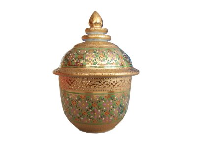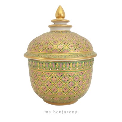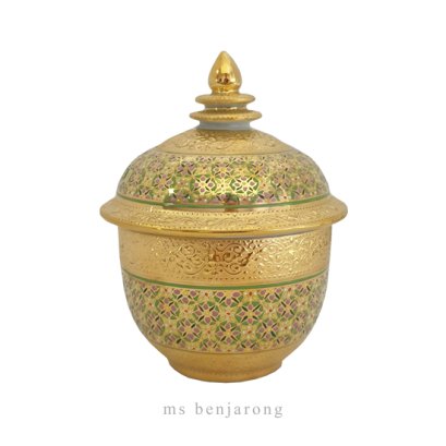 โถชั้น 3" พร้อมพาน เบญจรงค์ผสมทองนูน