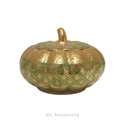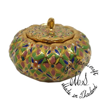 กาอ้วนจิ๋วเบญจรงค์ ผสม ทองนูน พร้อมกล่องผ้าไหม