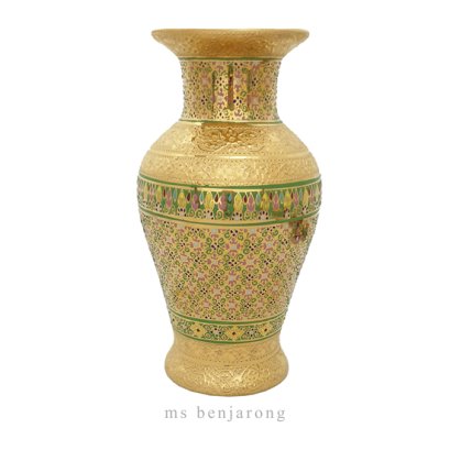แจกัน 6 นิ้วคู่ เบญจรงค์ ผสมทองนูน พร้อมกล่องผ้าไหม