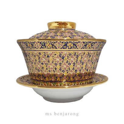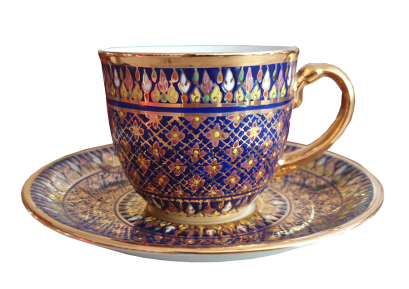 ถ้วยกาแฟใหญ่เบญจรงค์ ผสมทองนูน